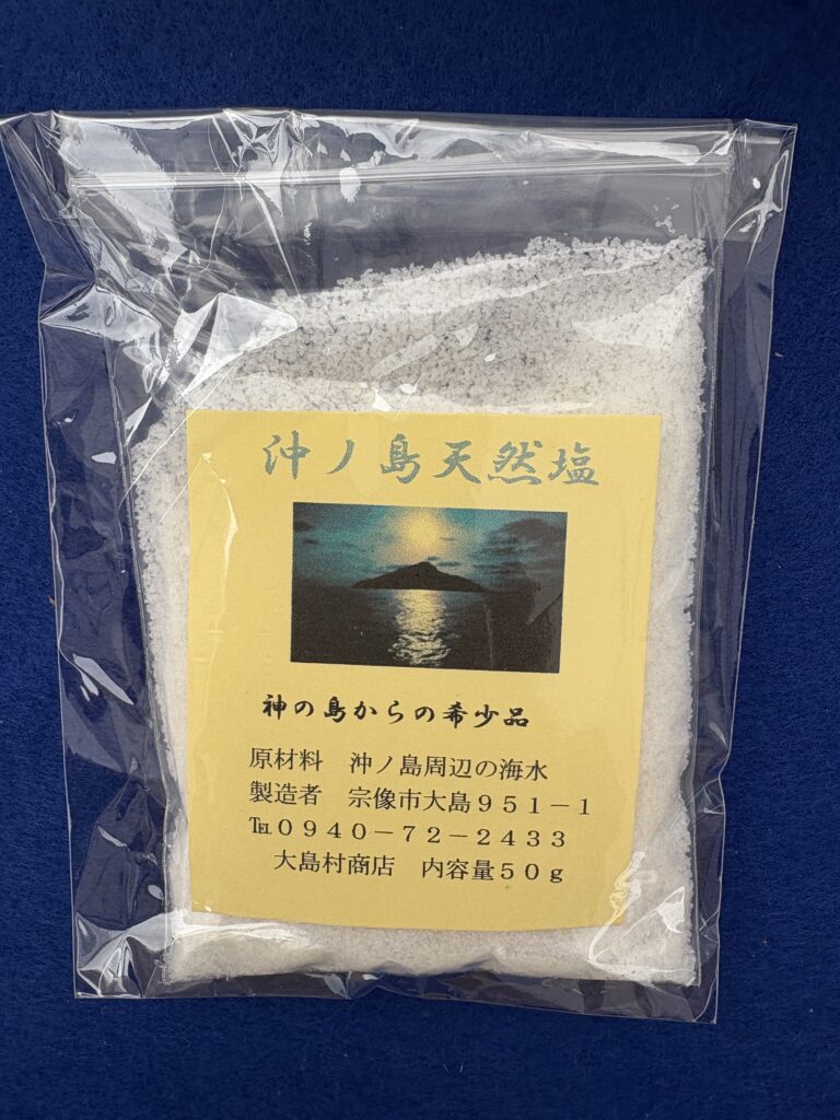 神宿る島沖ノ島その海域で汲み上げた海水を使用して丁寧に焚き上げた天然塩です。