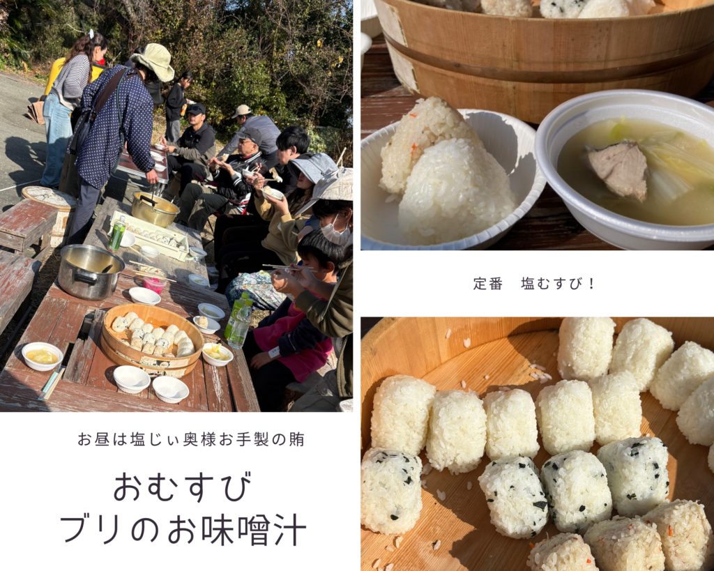 塩じぃの奥様と親戚女性陣お手製「おむすび」と「ブリ味噌汁」